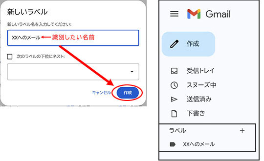 以上で受信設定は完了です。受信メールにはラベルが付いています。